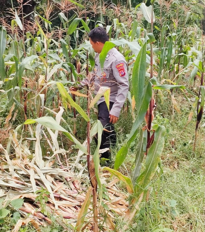 -POLRES CILEGON- Polda Banten. Personil Bhabinkamtibmas Bripka Agustoni bersama bersama warga binaanya Melaksanakan Panen Jagung Dalam Rangka Mendukung Program Ketahanan Pangan Pemerintah dengan Cek Tanaman jagung di JL.Oxsigen Komplek Perumahan KS Kelurahan Kotabumi Kecamatan Purwakarta Kota Cilegon.Jumat.(03-10-2025)