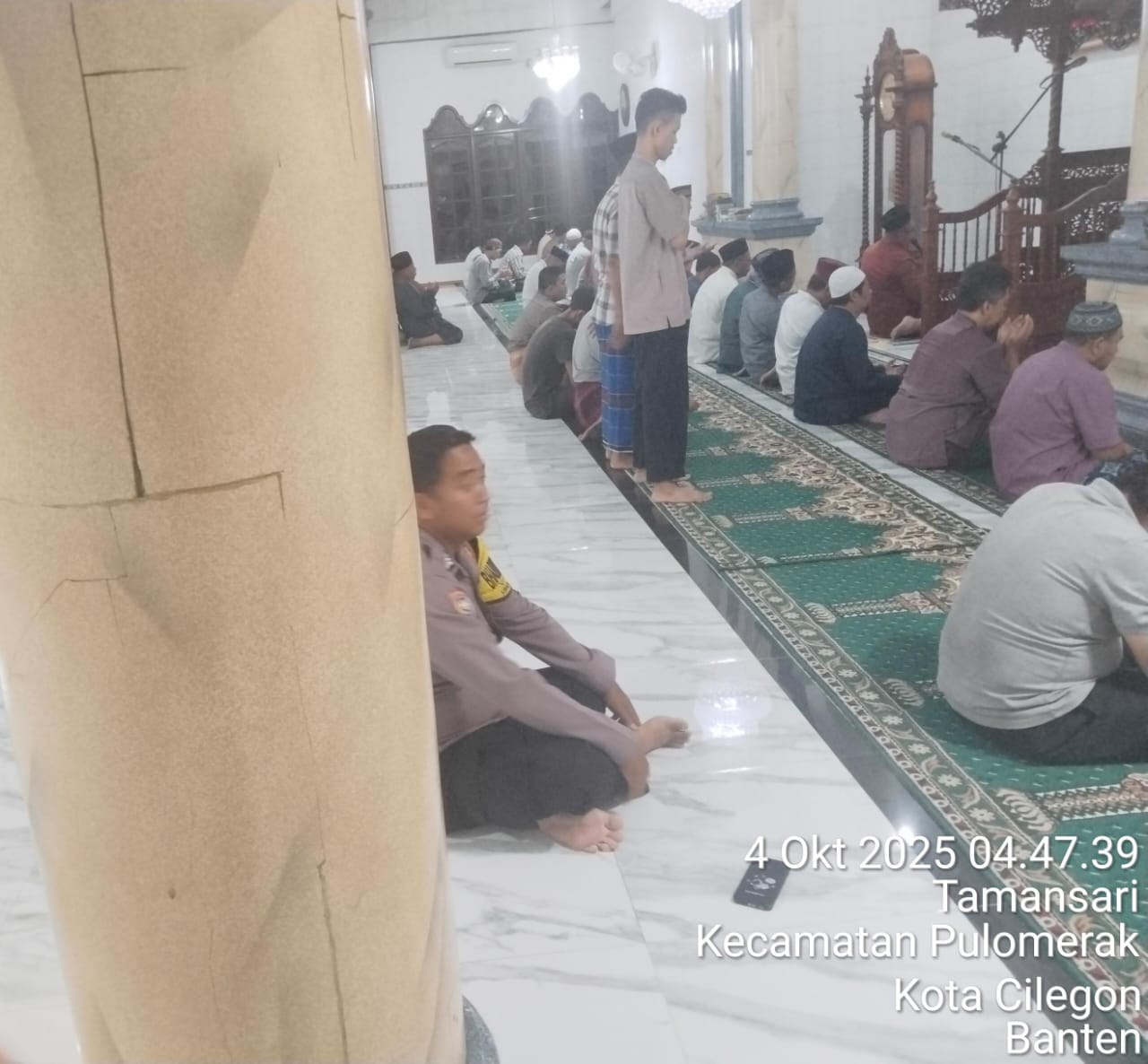 “Dalam kegiatan tersebut, Personil Polsek Kp Polres Cilegon Polda Banten turut berbaur dengan jemaah masjid dalam melaksanakan shalat subuh berjamaah. Setelah itu, dilakukan dialog interaktif antara petugas kepolisian dan masyarakat untuk mendengarkan aspirasi serta memperoleh masukan terkait dengan situasi keamanan dan ketertiban di lingkungan sekitar,” tambah Kapolsek.