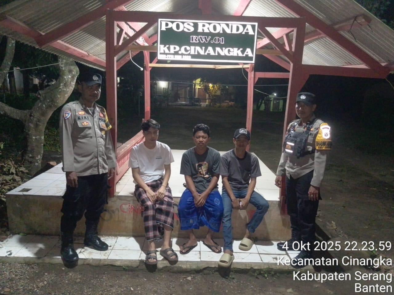 *Polres Cilegon* || Personil Bhabinkamtibmas Polsek Cinangka melaksanakan Program Komandan Wish Kapolda Banten RONDA SATKAMLING menyampaikan komunikasi dengan Petugas Siskamling agar berperan aktif dalam menciptakan Harkamtibmas yang aman dan Kondusif, Minggu (05/10/2025).