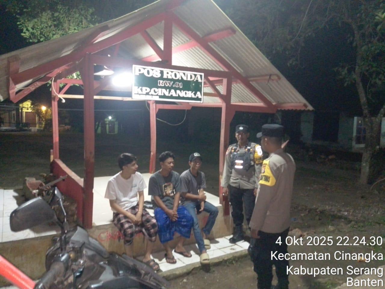 *Polres Cilegon* || Personil Bhabinkamtibmas Polsek Cinangka melaksanakan Program Komandan Wish Kapolda Banten RONDA SATKAMLING menyampaikan komunikasi dengan Petugas Siskamling agar berperan aktif dalam menciptakan Harkamtibmas yang aman dan Kondusif, Minggu (05/10/2025).