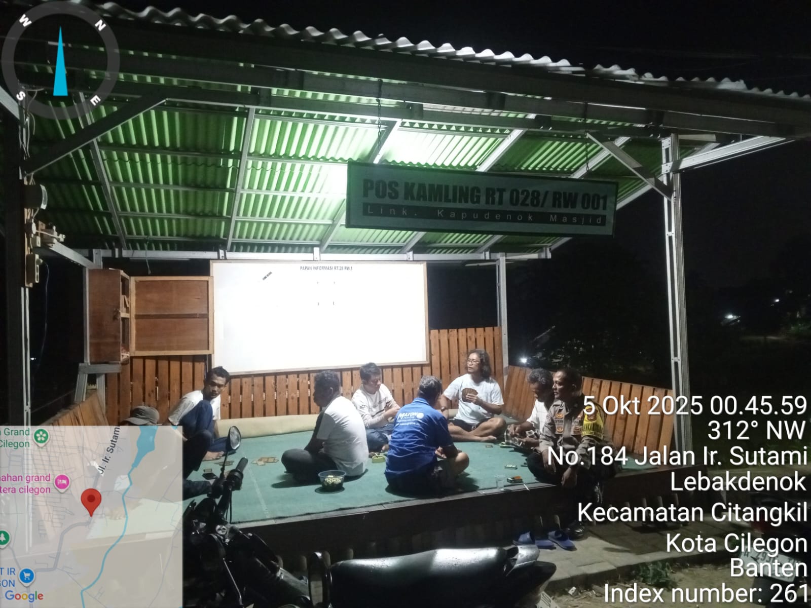 Cilegon - Guna Mencegah Terjadinya Tindak Kejahatan dan Menggiatkan Patroli Pos Ronda Siskamling di Pemukiman warga masyarakat,Personil Polsek Ciwandan Polres Cilegon Polda Banten Mengajak dan memantau pelaksanaan ronda siskamling di lingkungan daerah hukum Polsek Ciwandan, Minggu (05/10/2025).