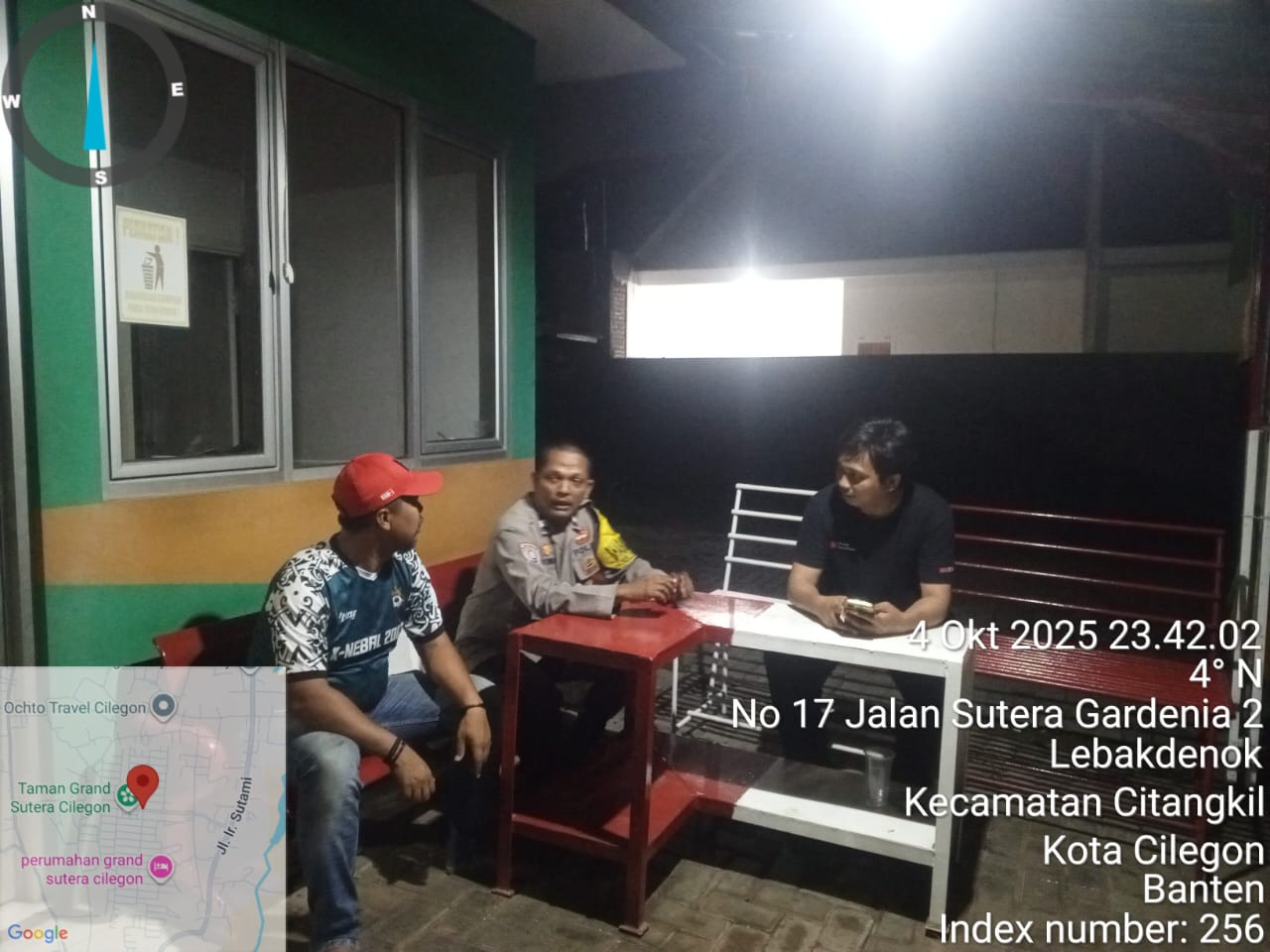 Cilegon - Guna Mencegah Terjadinya Tindak Kejahatan dan Menggiatkan Patroli Pos Ronda Siskamling di Pemukiman warga masyarakat,Personil Polsek Ciwandan Polres Cilegon Polda Banten Mengajak dan memantau pelaksanaan ronda siskamling di lingkungan daerah hukum Polsek Ciwandan, Minggu (05/10/2025).