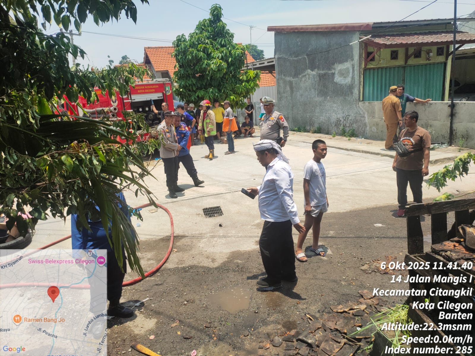 Cilegon - Polsek Ciwandan merespons cepat kebakaran warung dan dapur rumah milik Sdri. Mas'ah di Link Tegal Cabe, Kelurahan Citangkil, Kecamatan Citangkil, Kota Cilegon, pada Senin, 6 Oktober 2025. Api berhasil dipadamkan setelah tiga unit mobil pemadam kebakaran tiba di lokasi,Senin (06/10/2025).