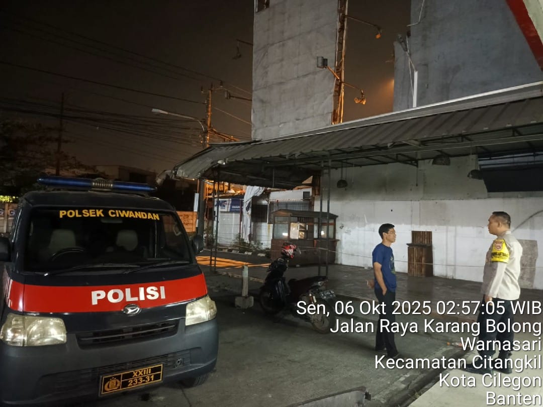 Cilegon - Polsek Ciwandan Polres Cilegon Polda Banten kembali menunjukkan komitmennya dalam menciptakan keamanan dan ketertiban masyarakat (kamtibmas) yang kondusif melalui Kegiatan Patroli Malam, Kegiatan ini dilakukan secara rutin dengan berkeliling di daerah hukum Polsek Ciwandan, Senin (06/10/2025).