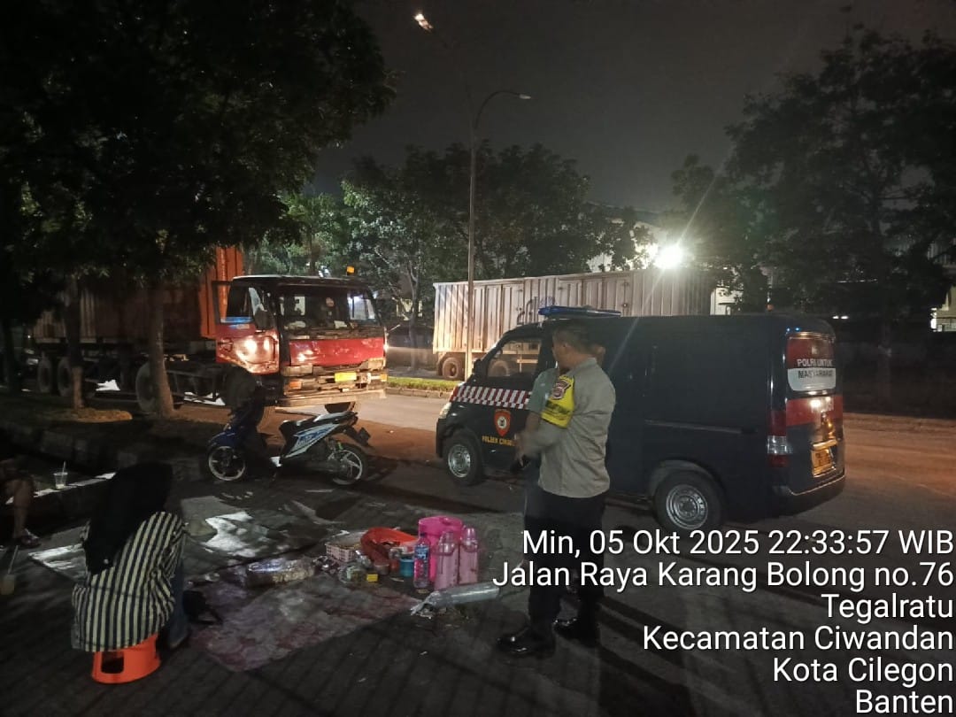 Cilegon - Polsek Ciwandan Polres Cilegon Polda Banten kembali menunjukkan komitmennya dalam menciptakan keamanan dan ketertiban masyarakat (kamtibmas) yang kondusif melalui Kegiatan Patroli Malam, Kegiatan ini dilakukan secara rutin dengan berkeliling di daerah hukum Polsek Ciwandan, Senin (06/10/2025).