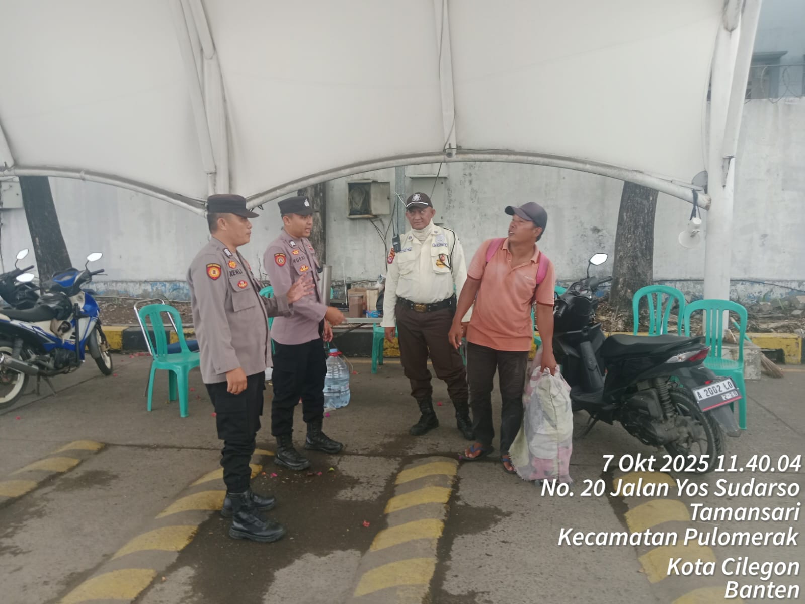Cilegon - Personel Polsek Kskp Merak Polres Cilegon Polda Banten melaksanakan sambang dan patroli kawasan pelabuhan merak dalam rangka menjaga Harkamtibmas di Kawasan Pelabuhan Merak, Selasa (07/10/2025).