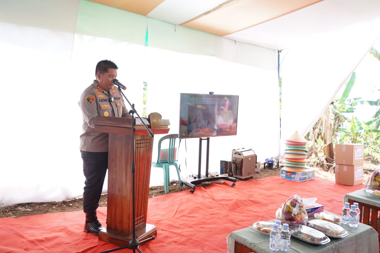 Dalam kesempatan tersebut, Kapolres Cilegon didampingi Wakapolres Cilegon Kompol Arif Nazaruddin Yusuf, S.H., S.I.K., M.H., bersama para Pejabat Utama Polres Cilegon, unsur Forkopimcam Anyer, dan perwakilan instansi terkait. Sebelum pelaksanaan Zoom Meeting, Kapolres meninjau langsung kegiatan operasi pasar murah, bakti sosial, dan bakti kesehatan yang turut dilaksanakan di lokasi sebagai bagian dari rangkaian kegiatan Polres Cilegon untuk mendukung kesejahteraan masyarakat.