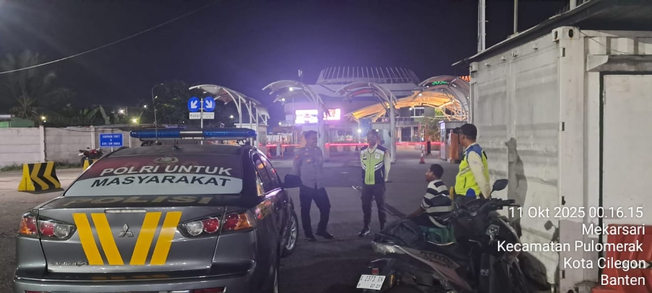 Cilegon - Personil Polsek Kskp Merak Polres Cilegon melaksanakan patroli di kawasan pelabuhan merak memberikan rasa aman dan damai, Sabtu (11/10/2025)