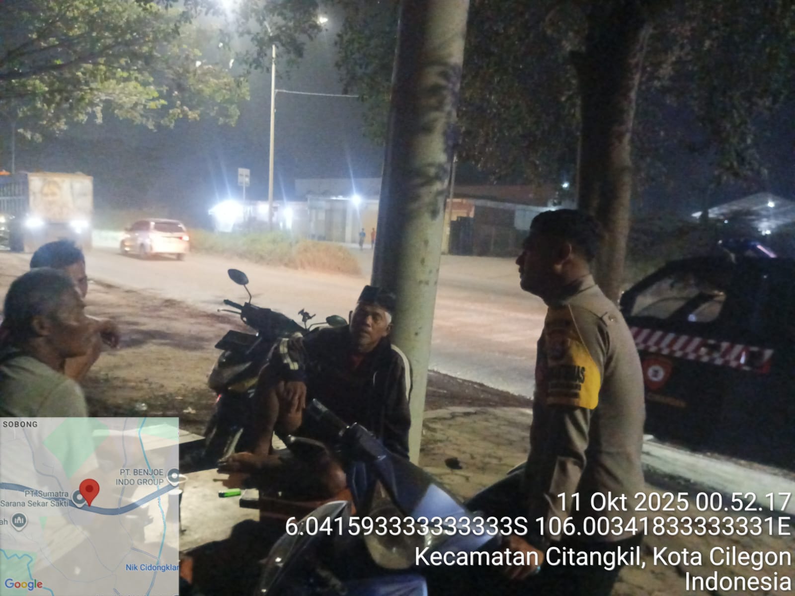Cilegon - Guna Mencegah Gangguan kamtibmas dan Tindakan Kriminalitas Kejahatan Jalanan,Personil Polsek Ciwandan Polres Cilegon Polda Banten Sampaikan Pesan-Pesan Kamtibmas Kepada Sopir Angkutan Barang, Sabtu (11/10/2025).