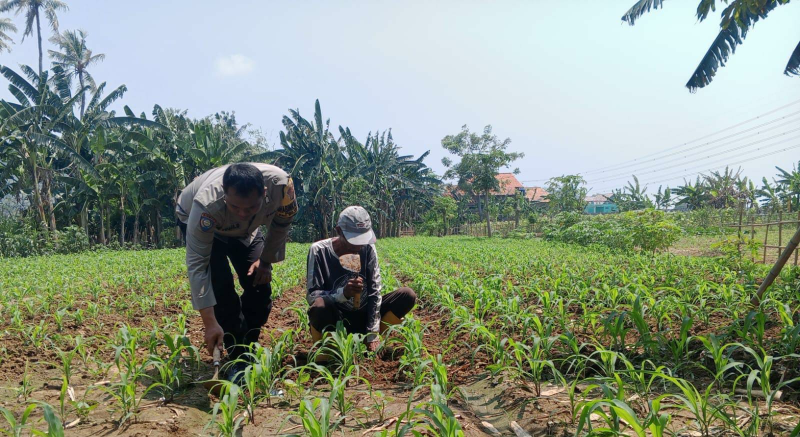 Bripka N. Susilo Bhabinkamtibmas Desa Ukirsari Polsek Bojonegara Laksanakan Perkembangan Tanaman Jagung
