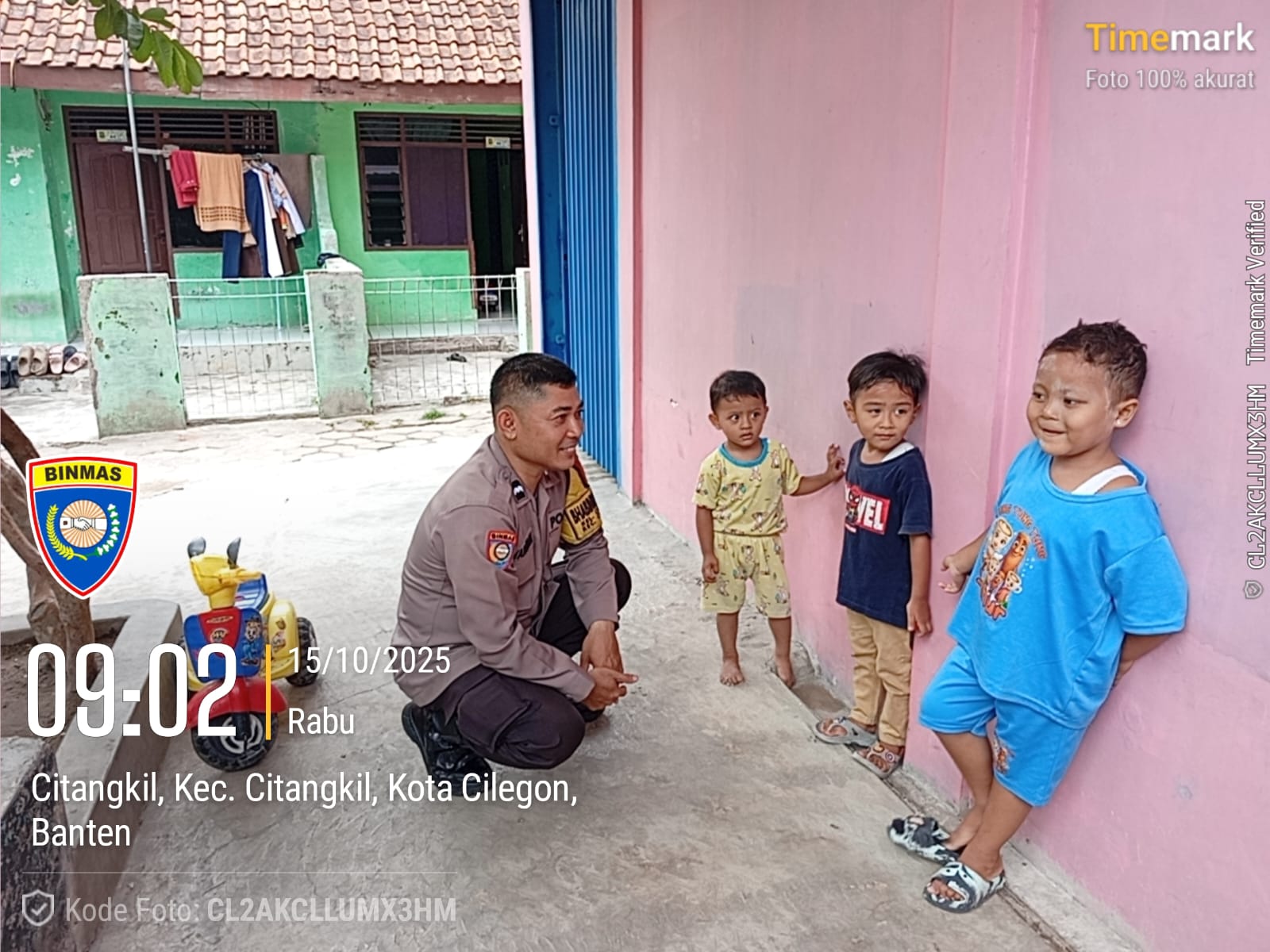 Cilegon - Kenalkan Sosok Polri Kepada Anak-anak,Bhabinkamtibmas Polsek Ciwandan Polres Cilegon Polda Banten AIPDA Warudin melaksanakan kegiatan Polisi Sahabat Anak (PSA), Kamis (16/10/2025).