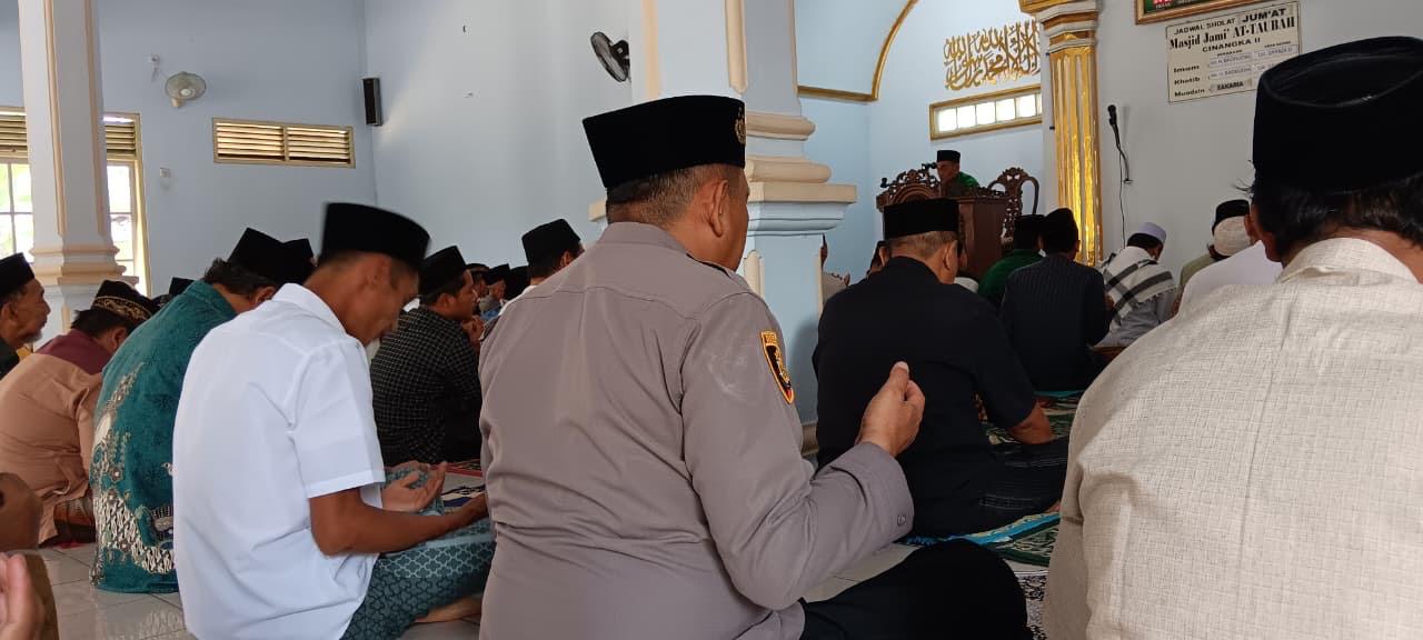 *POLRES CILEGON* - Kapolsek Cinangka Polres Cilegon Polda Banten dan Jajaran melaksanakan giat Juma't keliling dalam rangka silaturahmi menjalin kemitaraan dan menjaga Harkamtibmas di Desa Binaannya sebagai bentuk mendukung Program Quick Wins Presisi Polri, Jumat (17/10/2025).
