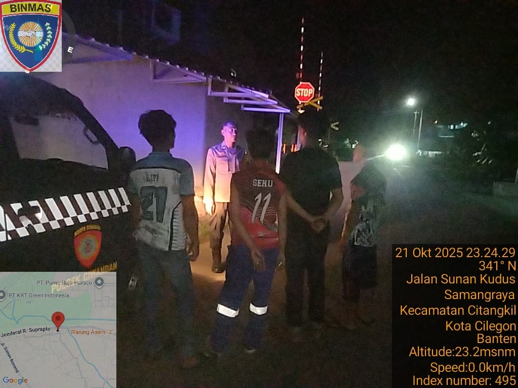 Cilegon - Dalam rangka menekan tindak kriminalitas serta untuk memberikan rasa aman dan nyaman kepada masyarakat terutama pada malam hari,Personil Polsek Ciwandan Polres Cilegon Polda Banten melakukan patroli malam hari di daerah-daerah yang rawan kriminalitas, Rabu (22/10/2025).