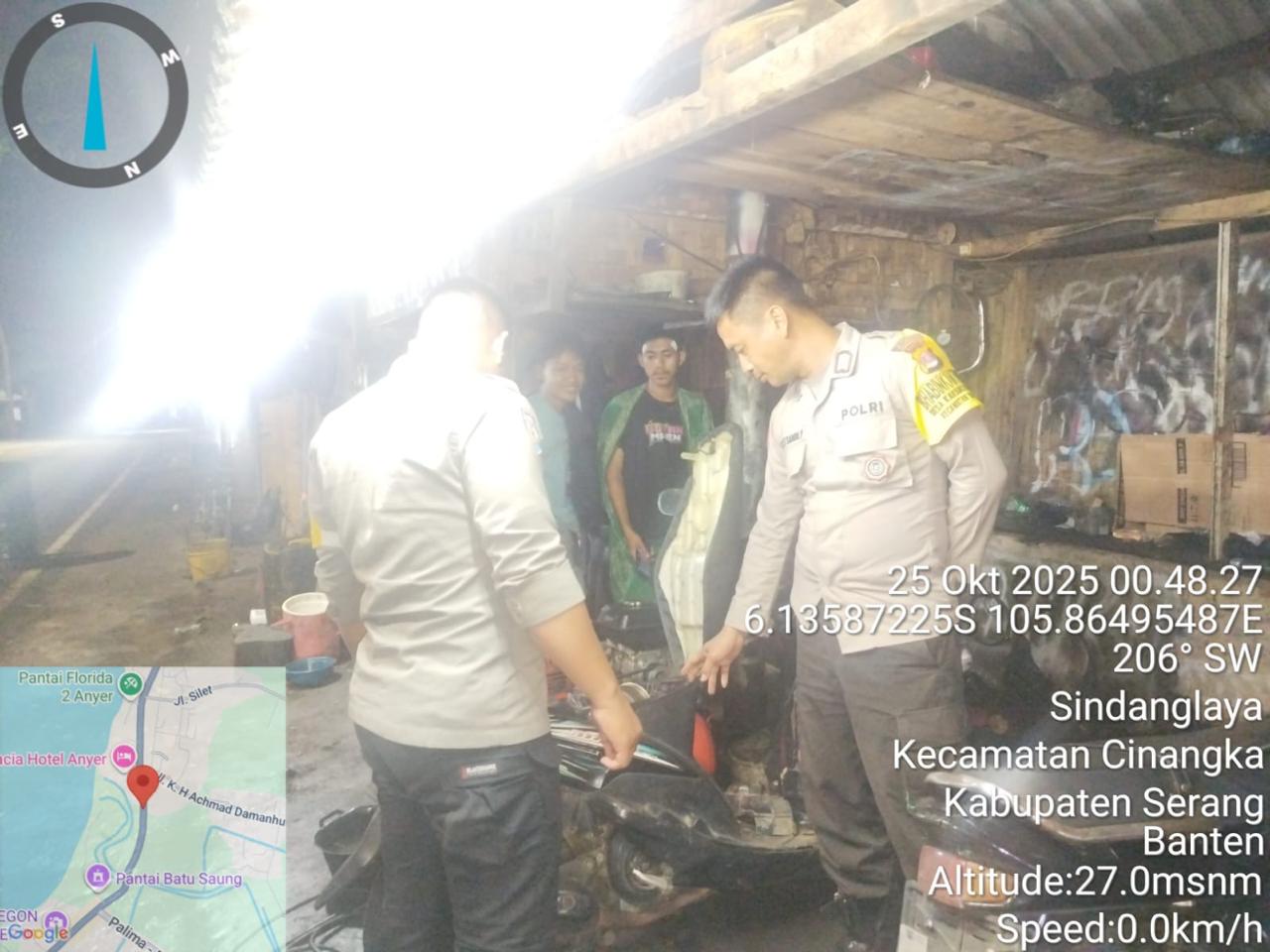 *Cilegon* – Dalam Rangka Pencegahan Kejahatan Jalanan dan Memelihara situasi keamanan dan menjaga serta memberikan rasa aman dan nyaman di masyarakat,Salah satu upaya untuk mewujudkan hal tersebut sebagaimana yang dilakukan oleh Personil Polsek Cinangka Polres Cilegon Polda Banten melaksanakan giat patroli blue light malam hari hingga menjelang pagi, Sabtu (25/10/2025).