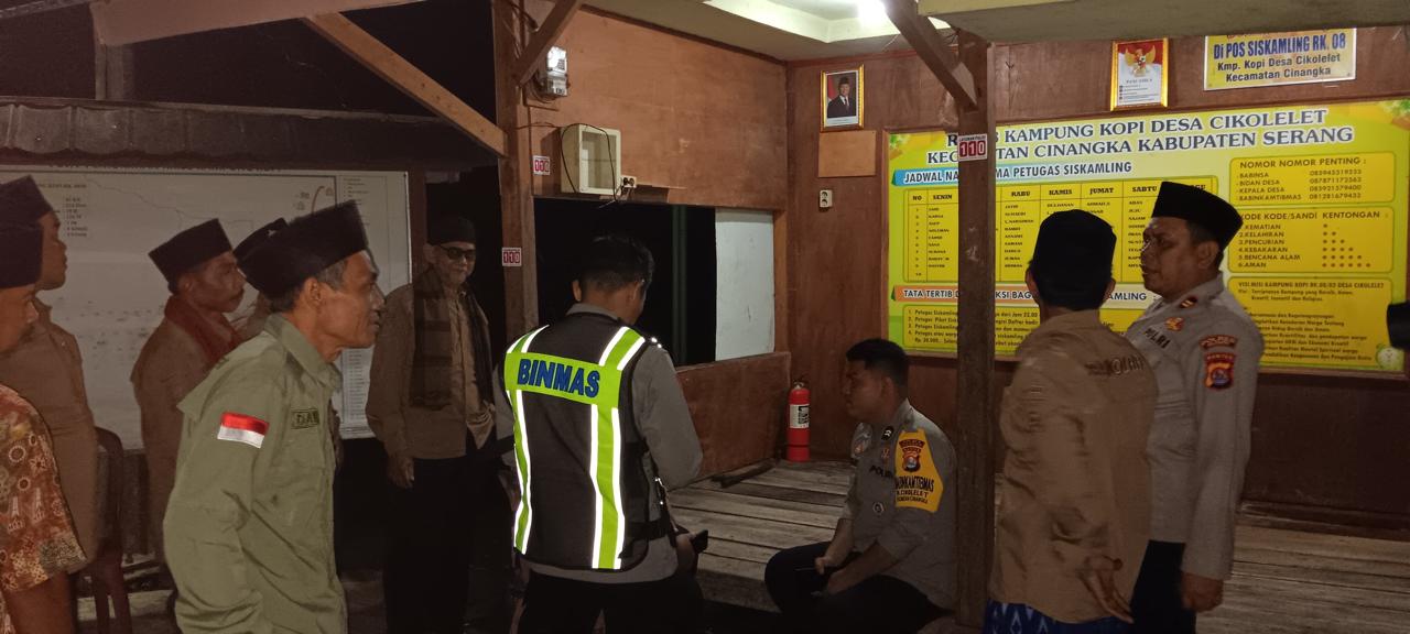 *Polres Cilegon* Kapolsek Cinangka melaksanakan Program Commander Wish Kapolda Banten RONDA SATKAMLING menyampaikan komunikasi dengan Petugas Siskamling agar berperan aktif dalam menciptakan Harkamtibmas yang aman dan Kondusif, Minggu (26/10/2025).