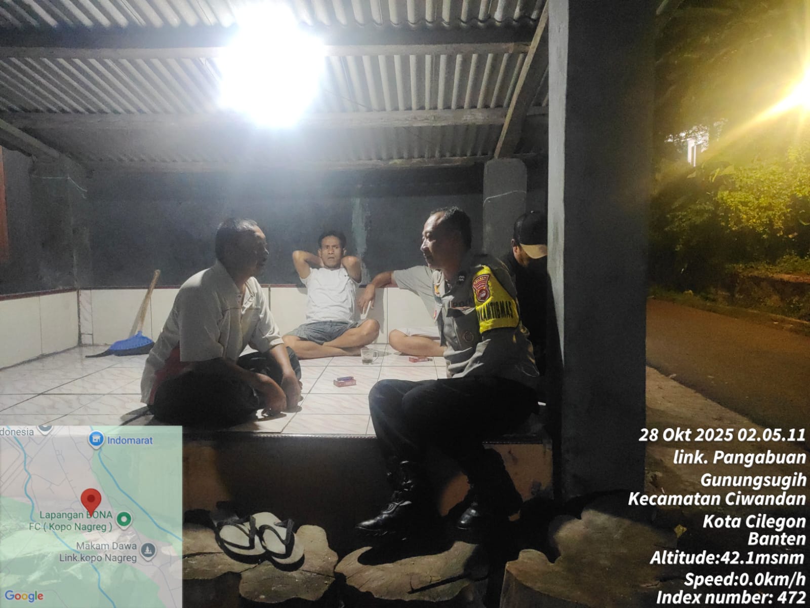 Cilegon - Bhabinkamtibmas Polsek Ciwandan Polres Cilegon Polda Banten kontrol Pos Ronda dan Berikan himbauan kepada pihak terkait dan warga, agar kegiatan Siskamling ditingkatkan lagi, Selasa (28/10/2025).