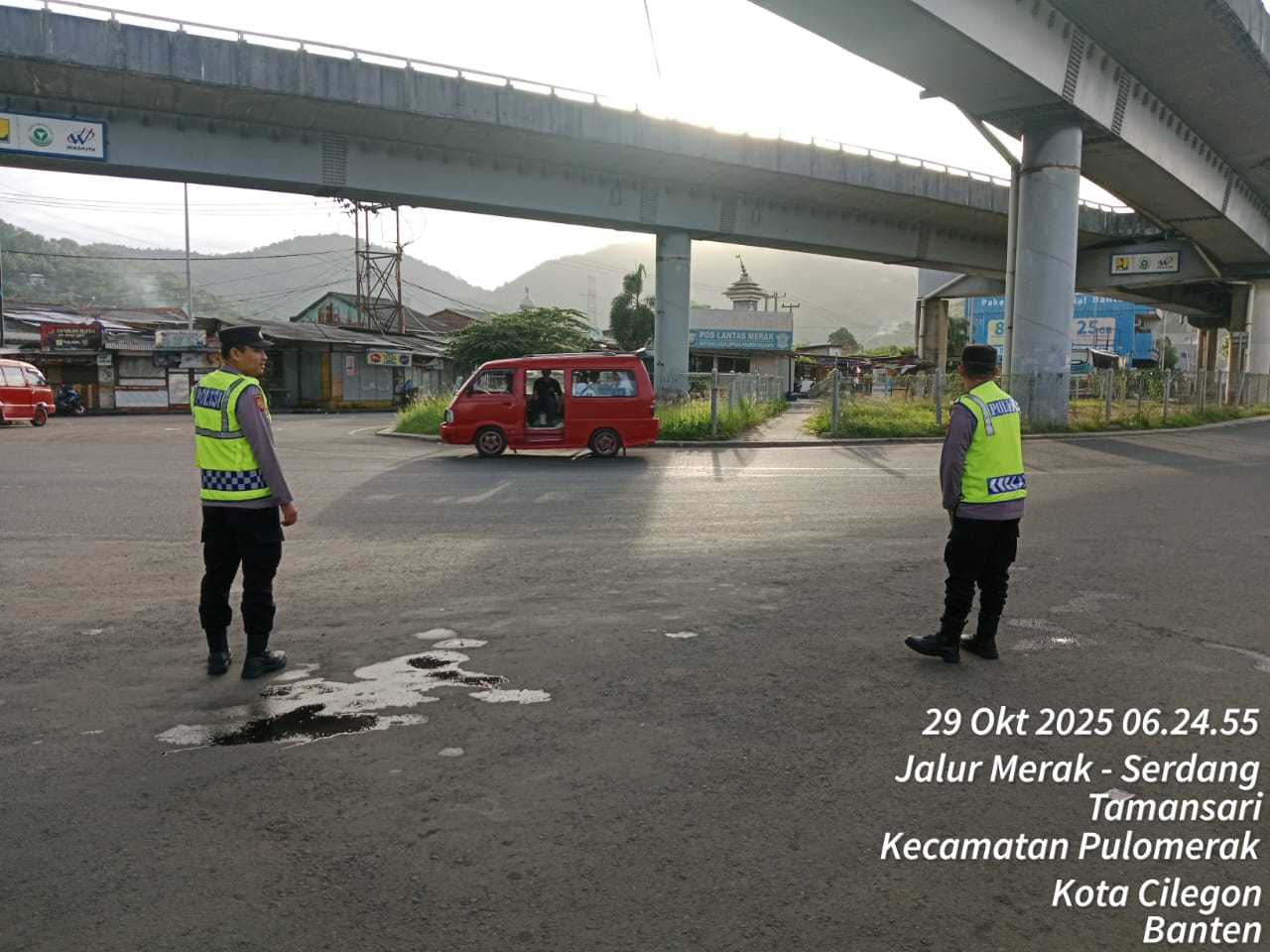 Wujud Pelayanan Prima, Polsek KSKP Merak Laksanakan Pengaturan Antrian Kendaraan di Pelabuhan