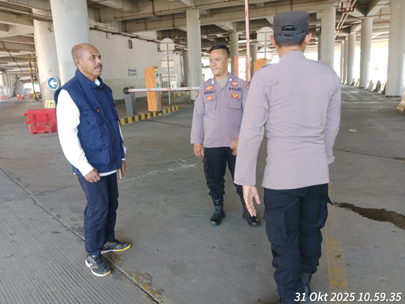 Cilegon - Personel Polsek Kskp Merak Polres Cilegon Polda Banten melaksanakan sambang dan patroli kawasan pelabuhan merak dalam rangka menjaga Harkamtibmas di Kawasan Pelabuhan Merak, Jumat (31/10/2025).
