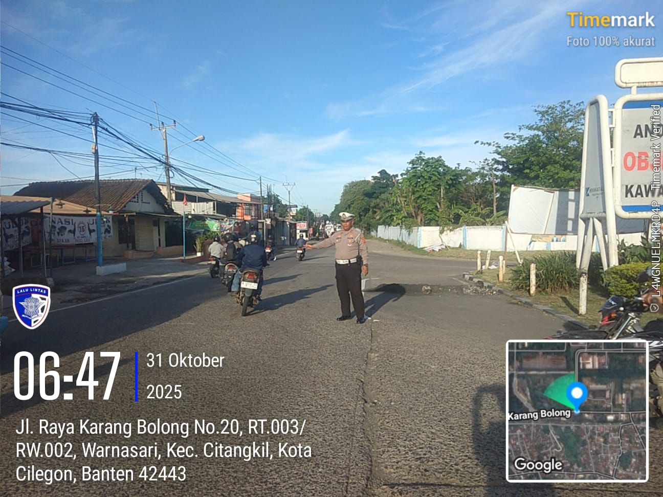 Cilegon – Berikan Pelayanan Pagi Kepada Masyarakat Personil Polsek Ciwandan Polres Cilegon Polda Banten melaksanakan pengaturan di titik kepadatan Arus Lalu-lintas Yang Ada Di daerah Hukum Polsek Ciwandan, Jum’at (31/10/2025).