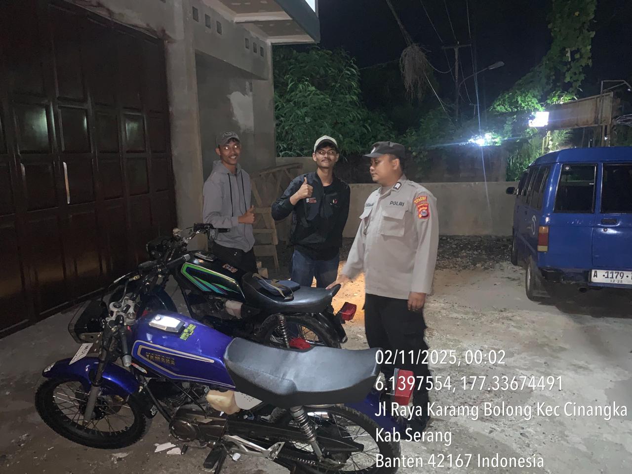 *Cilegon* – Dalam Rangka Pencegahan Kejahatan Jalanan dan Memelihara situasi keamanan dan menjaga serta memberikan rasa aman dan nyaman di masyarakat,Salah satu upaya untuk mewujudkan hal tersebut sebagaimana yang dilakukan oleh Personil Polsek Cinangka Polres Cilegon Polda Banten melaksanakan giat patroli blue light malam hari hingga menjelang pagi, Minggu (02/11/2025).
