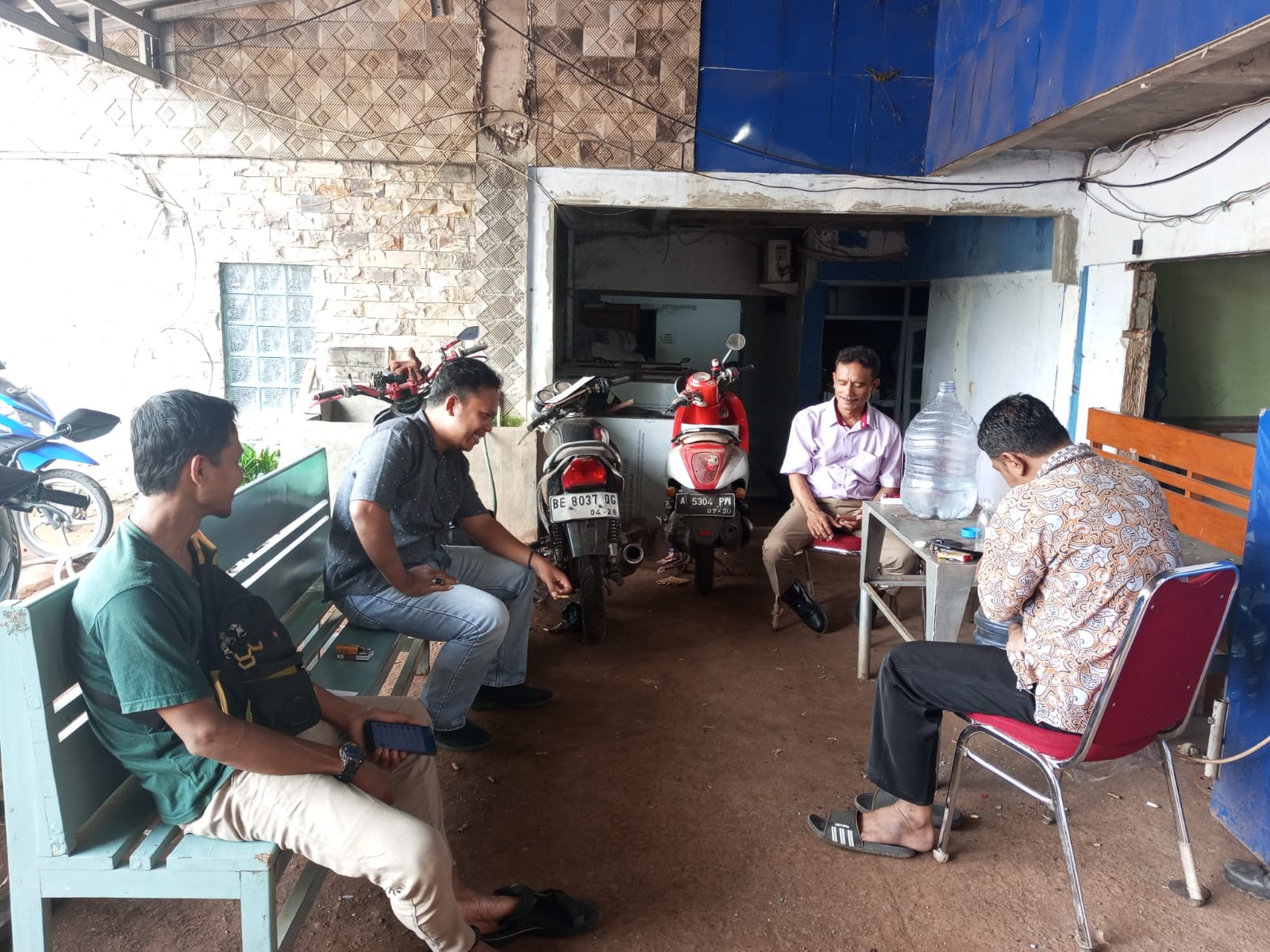 Personil sat intelkam melakukan koordinasi dengan tokoh pemuda kec. Pulomerak kota cilegon.