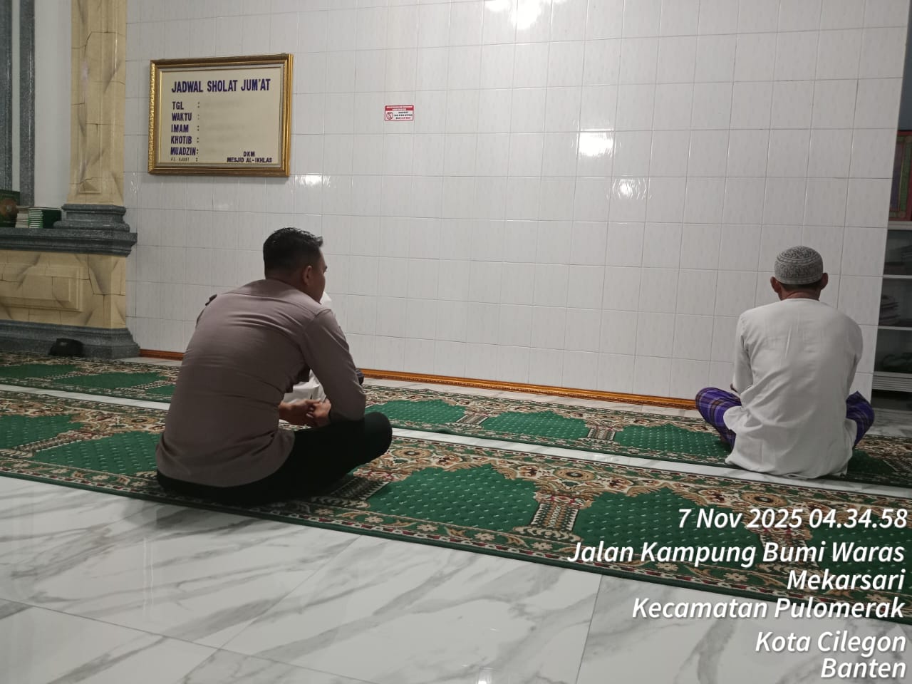 Cilegon – Personil Kskp Merak Polres Cilegon Polda Banten menggelar kegiatan Pembinaan Rohani dengan shalat subuh keliling di Masjid Yang ada Di Daerah hukum Polsek Kp Merak Polres Cilegon Polda Banten, Jumat (07/11/2025).