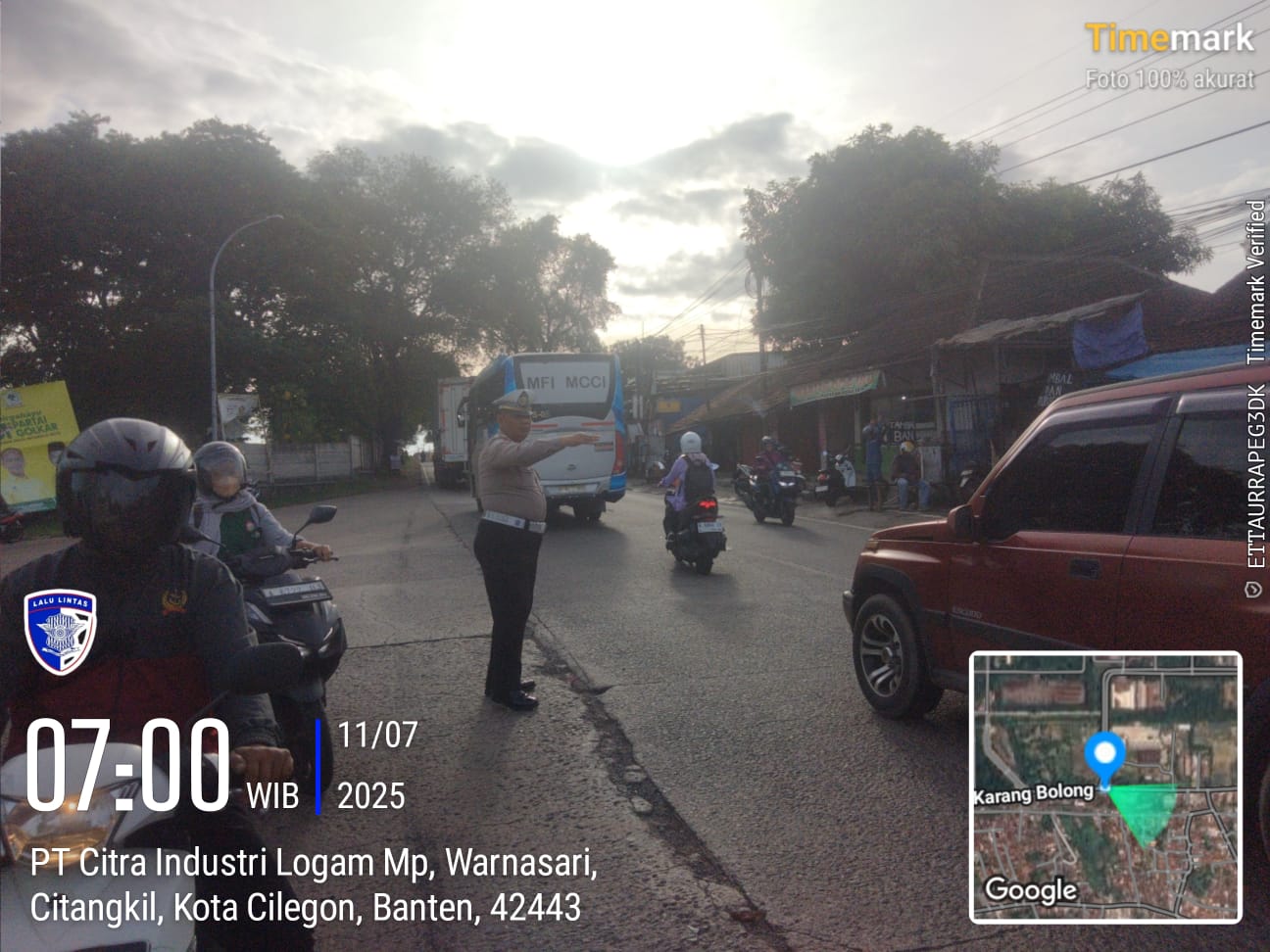 Cilegon – Berikan Pelayanan Pagi Kepada Masyarakat Personil Polsek Ciwandan Polres Cilegon Polda Banten melaksanakan pengaturan di titik kepadatan Arus Lalu-lintas Yang Ada Di daerah Hukum Polsek Ciwandan, Jum’at (07/11/2025).