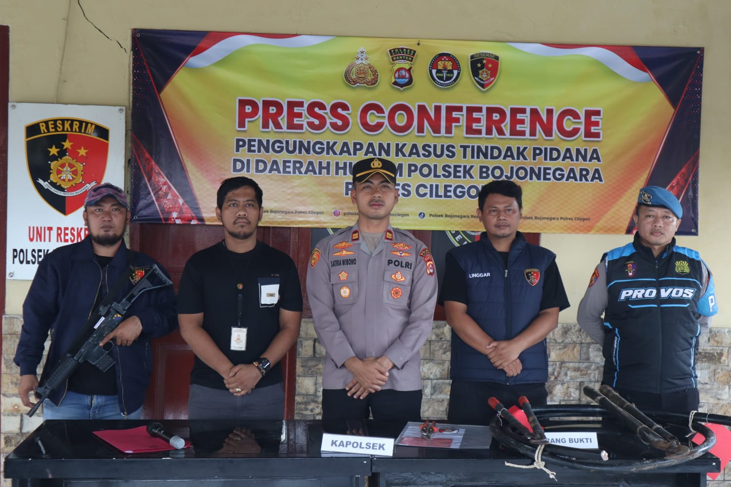 Keberhasilan pengungkapan kasus tersebut disampaikan langsung oleh Kapolsek Bojonegara, IPTU Muhammad Lazim Satria Wibowo, S.Tr.K., dalam kegiatan press conference yang digelar di Aula Polsek Bojonegara, Senin (10/11/2025).