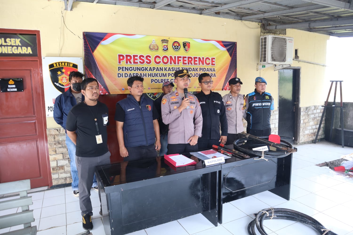 Keberhasilan pengungkapan kasus tersebut disampaikan langsung oleh Kapolsek Bojonegara, IPTU Muhammad Lazim Satria Wibowo, S.Tr.K., dalam kegiatan press conference yang digelar di Aula Polsek Bojonegara, Senin (10/11/2025).