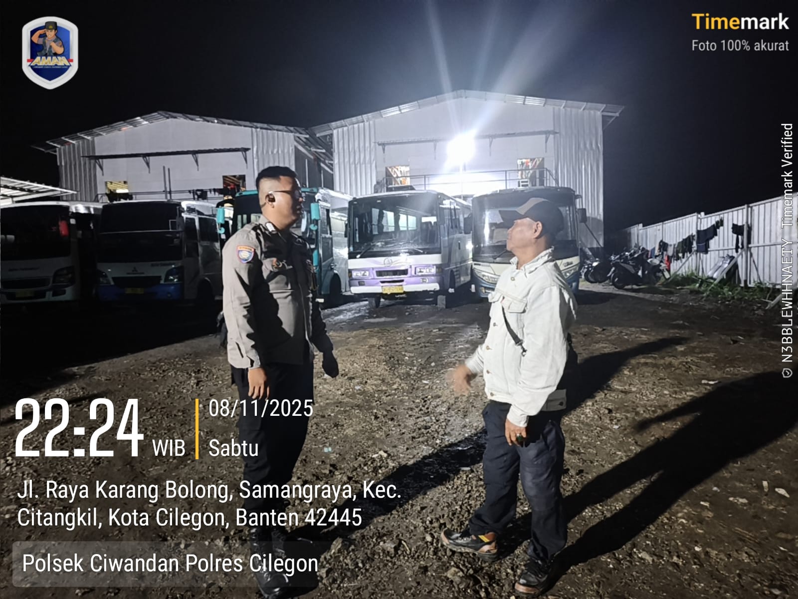 Cilegon - Upaya mengantisipasi aksi kejahatan pada daerah binaan dan memberikan rasa aman dan nyaman kepada warga binaan, Bhabinkamtibmas Polsek Ciwandan Polres Cilegon Polda Banten sambangi warga pada malam hari, Swnin (10/11/2025).