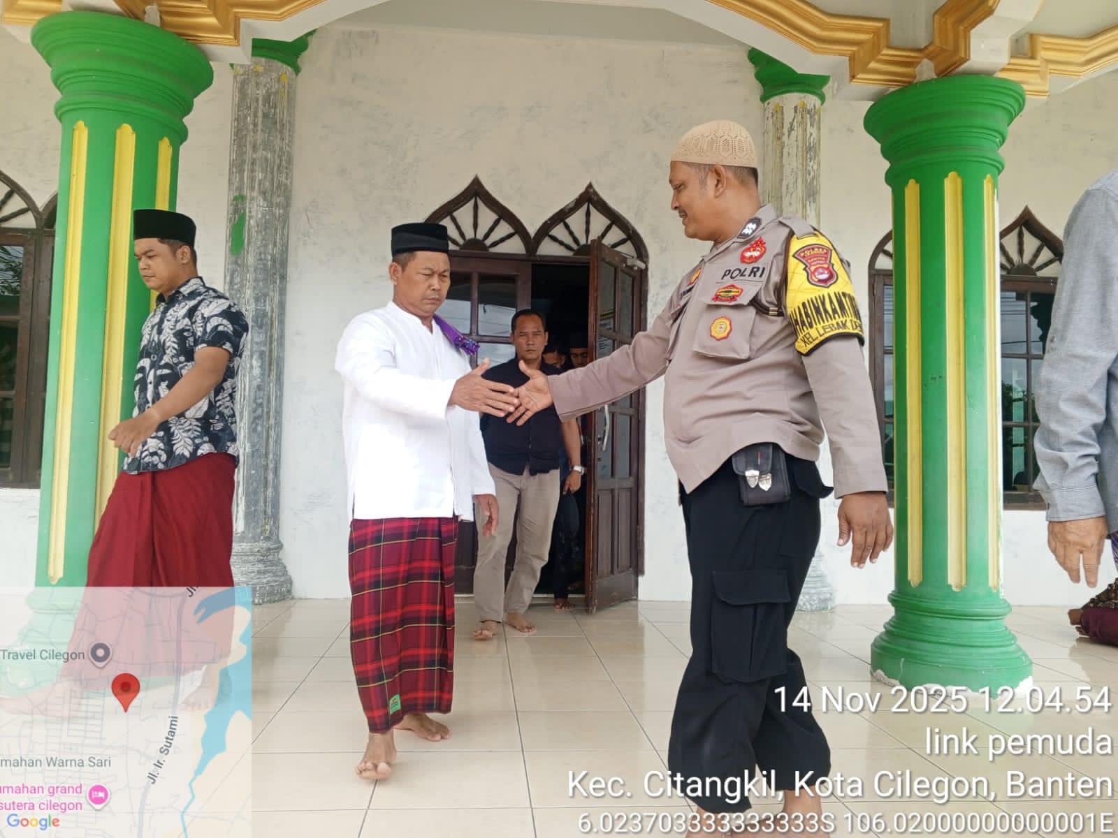 Cilegon - Dalam Rangka Implementasi Program Kapolda Banten Yaitu Sholat Jum’at Keliling Dan Berjama’ah Serta Memakmurkan Masjid Bhabinkamtibmas Polsek Ciwandan Polres Cilegon Polda Banten Sholat Berjama’ah dan Bersilaturahmi Bersama masyarakat sebagai upaya meningkatkan Ukhuwah Islamiyah dalam menjalin silaturahmi dan membangun komunikasi yang baik,Jum’at (14/11/2025).