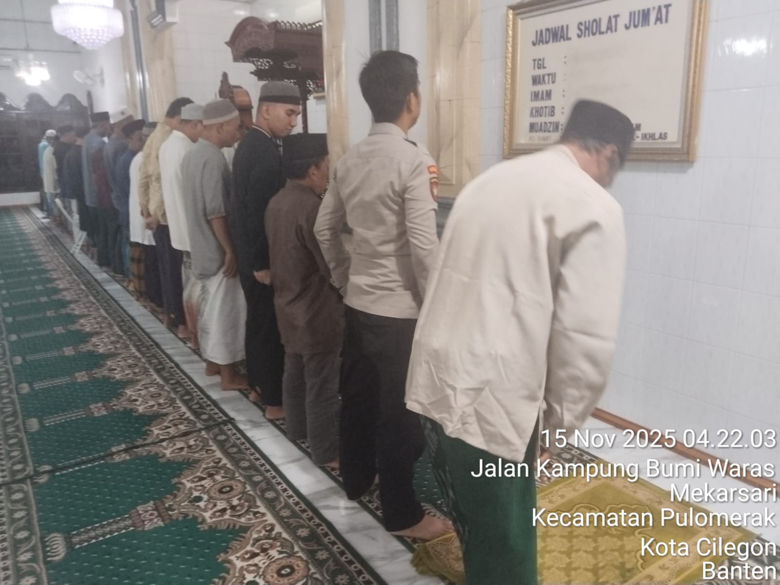 “Dalam kegiatan tersebut, Personil Polsek Kp Polres Cilegon Polda Banten turut berbaur dengan jemaah masjid dalam melaksanakan shalat subuh berjamaah. Setelah itu, dilakukan dialog interaktif antara petugas kepolisian dan masyarakat untuk mendengarkan aspirasi serta memperoleh masukan terkait dengan situasi keamanan dan ketertiban di lingkungan sekitar,” tambah Kapolsek.