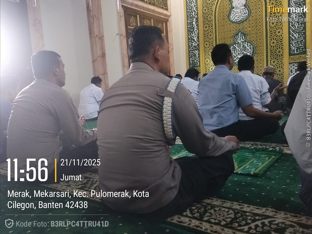 Cilegon – Personil Kskp Merak Polres Cilegon Polda Banten menggelar kegiatan Pembinaan Rohani dengan shalat Jumat keliling di Masjid Yang ada Di Daerah hukum Polsek Kp Merak Polres Cilegon Polda Banten, Jumat (21/11/2025).