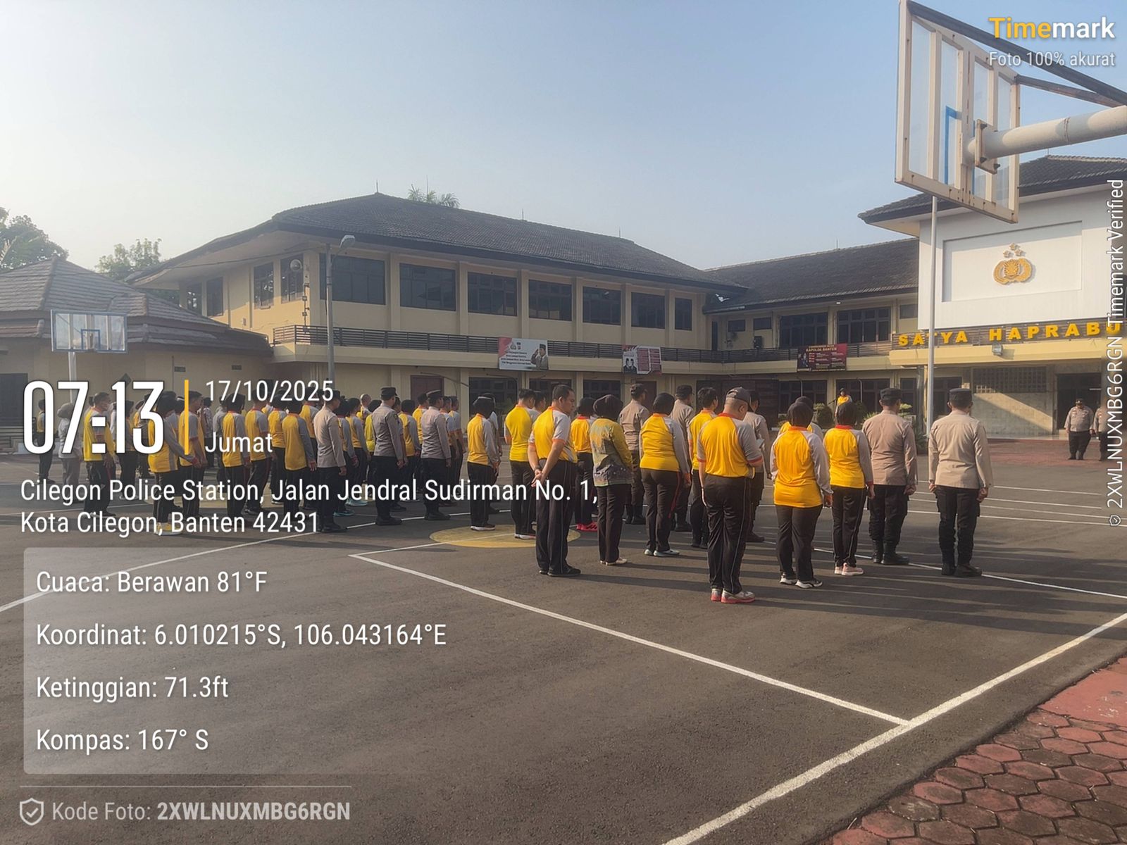 Cilegon,Polres Cilegon Polda Banten Pada Jumat/28/11/2025 Pukul 07.15 Wib, Personil  Polres Cilegon, melaksanakan kegiatan olahraga mandiri di lapangan Polres Cilegon dan melaksanakan senam aerobik di Lapangan polres cilegon.