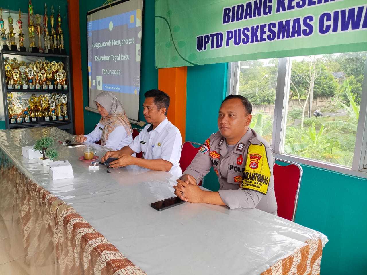 Cilegon - Polsek Ciwandan Polres Cilegon Polda Banten Hadir Dalam Kegiatan (MMK) Musyawarah Masyarakat Kelurahan Bidang Kesehatan UPTD Puskesmas Ciwandan Tahun 2025 Di Aula Kantor Kelurahan Tegalratu Kecamatan Ciwandan, Rabu (26/11/2025).