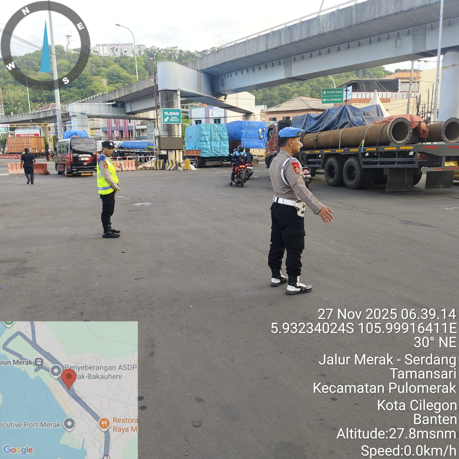 Kapolres Cilegon Polda Banten AKBP Martua Raja Taripar Laut Silitonga melalui Kapolsek Kskp Merak AKP Gusti Almasri P menyampaikan bahwa kegiatan pengaturan antrian ini adalah dalam rangka memberikan pelayanan kepada masyrakat yang akan menyebrang ke Bakauheni atau Sumatra melalui jalur laut dengan menaiki kapal Ferry.