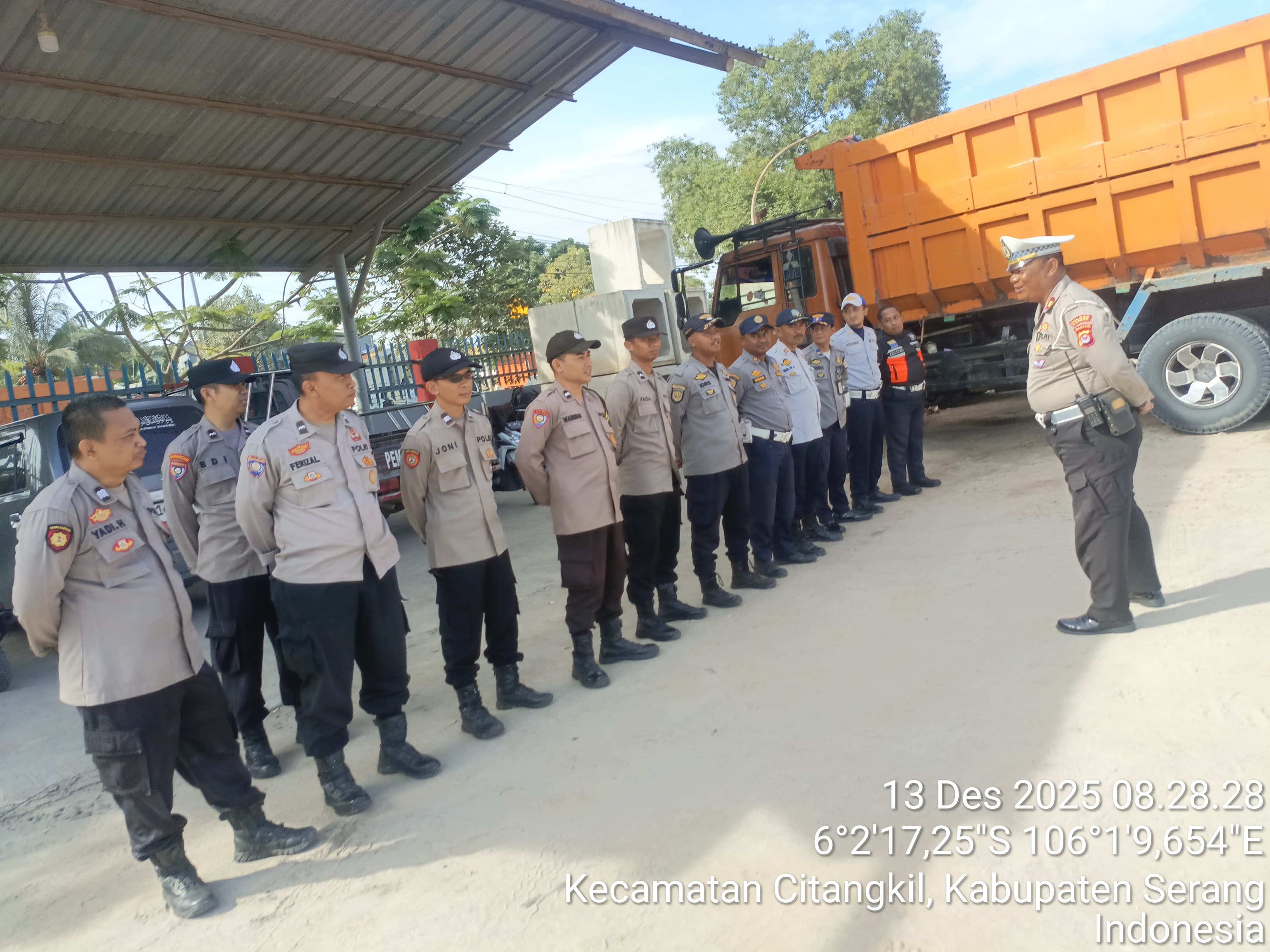 Cilegon - Panit Lantas Polsek Ciwandan IPTU Deni Mulyana Bersama Personil Gabungan Polres Cilegon Polda Banten melaksanakan Kegiatan KRYD Dan Himbauan SK Gubernur Dan monitoring stokfile pasir Didaerah hukum Polsek Ciwandan, Sabtu (13/12/2025).