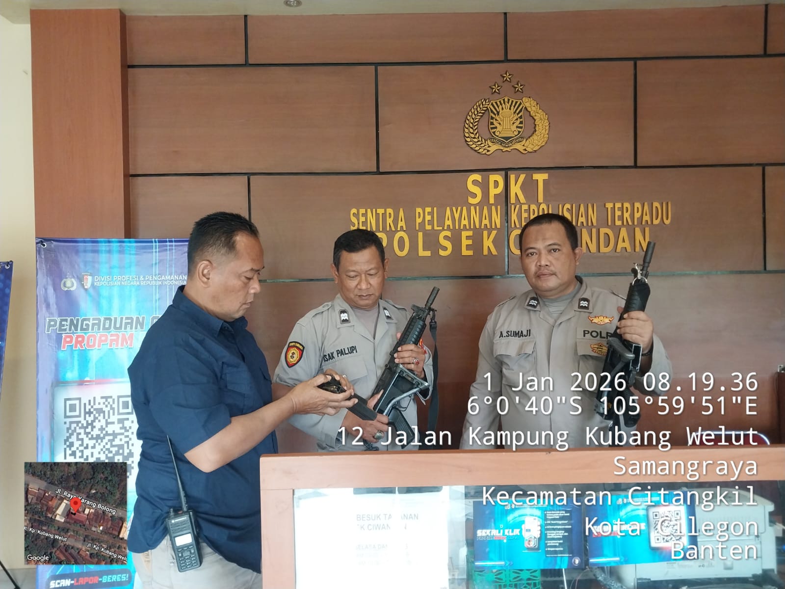 Kapolres Cilegon Polda Banten AKBP Dr. Martua Raja Taripar Laut Silitonga Melalui Kapolsek Ciwandan Polres Cilegon Polda Banten KOMPOL Andi Suherman Menekankan dan menegaskan dalam serah terima tugas jaga Mako dan pelayanan KA-SPKT wajib mengecek barang Inventaris mulai dari Senpi Dinas, Mobil Patroli, serta barang Inventaris lainya termasuk Mako apabila ada hal yang tidak sesuai wajib di cek secara seksama sehingga sewaktu serah terima tidak ada yang terabaikan dan dapat dipertanggung jawabkan, ungkapnya.