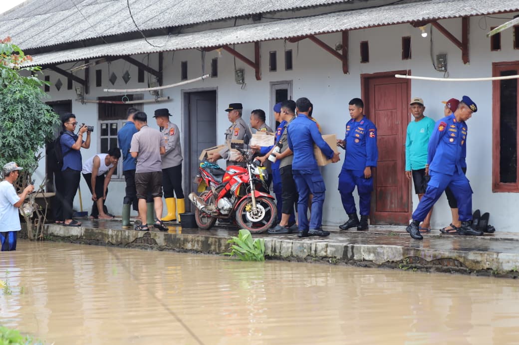 Usai meninjau dapur umum, Kapolda Banten melanjutkan pengecekan ke lokasi banjir di Lingkungan Sambirata RT 005/003, Kelurahan Cibeber, Kecamatan Cibeber. Di lokasi tersebut, Kapolda melihat langsung kondisi pemukiman warga yang terdampak banjir sekaligus menyerahkan bantuan makanan kepada masyarakat sebagai bentuk empati dan dukungan moril.