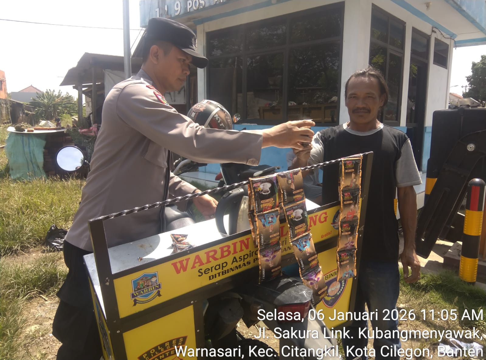 Cilegon - Bhabinkamtibmas Polsek Ciwandan Polres Cilegon Polda Banten melaksanakan kegiatan WARBIN (warung Blnhabinkamtibmas) di Lingkungan Binaan, Selasa (06/01/2026).
