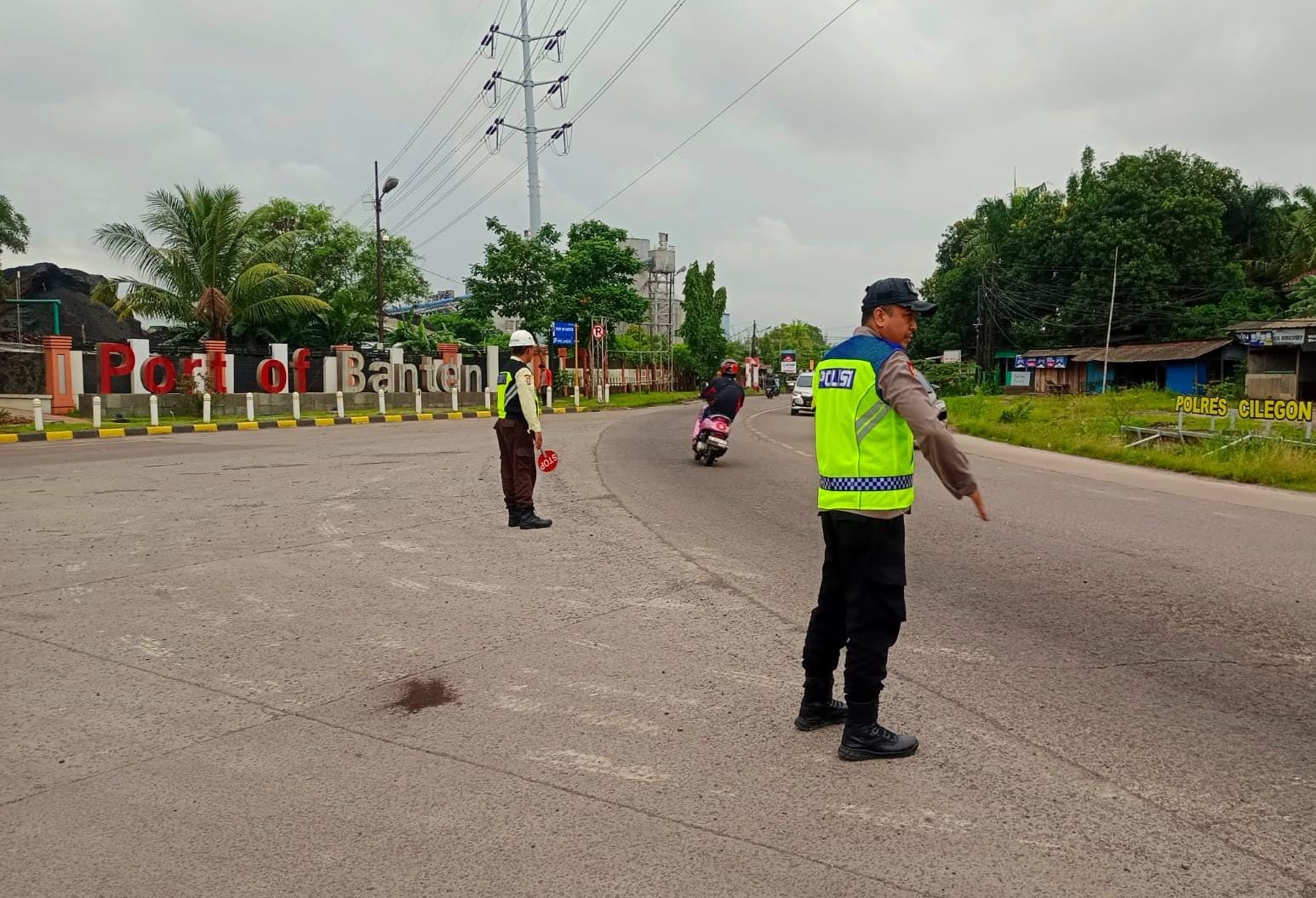 Kapolres Cilegon AKBP Martua Raja Taripar Laut Silitonga Melalui Kapolsek Kskp Banten Polres Cilegon AKP Fredo Leonard menyampaikan Laksanakan Pengamanan Sesuai plotinganya lakukan Pengaturan Supaya Arus Lalu Lintas tetap Berjalan lancar dan Pastikan tidak ada hambatan.