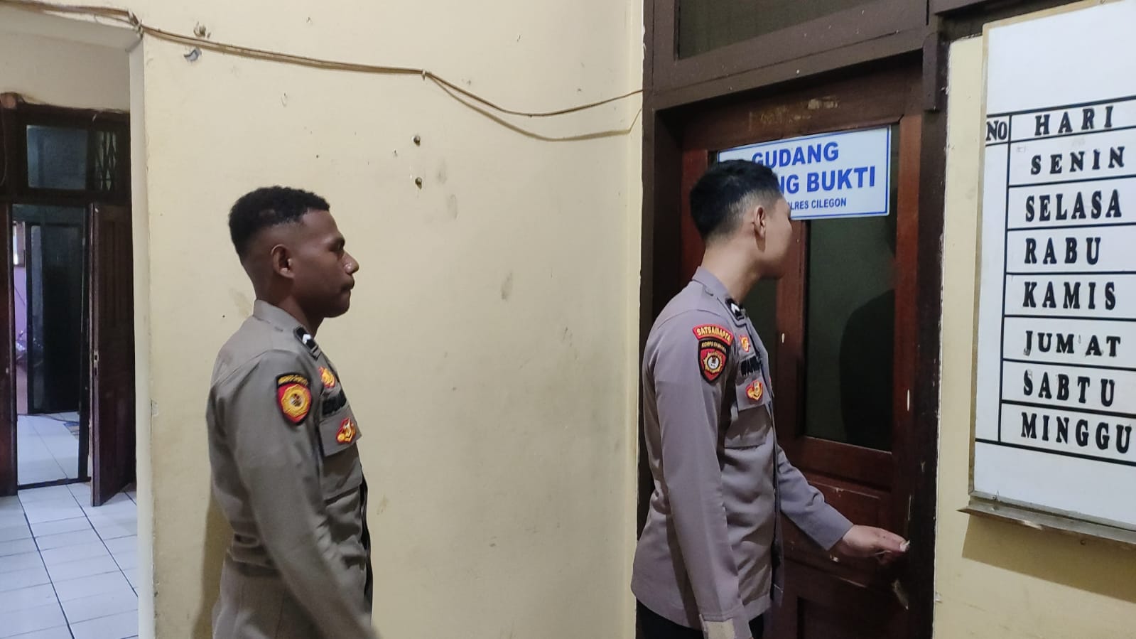 Anggota Piket Tahti Polres Cilegon, Harus Melakukan Kegiatan Rutin Pengecekan Kelengkapan dan Barang Bukti Di Gudang Barang Bukti.
