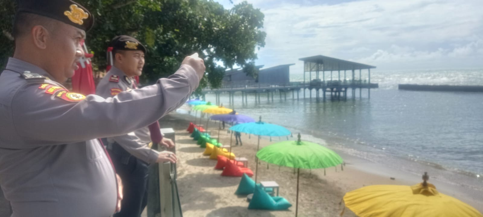 Personel Satpamobvit Polres Cilegon melaksanakan patroli wisata serta memberikan himbauan kepada para pengunjung, guna mewujudkan harkamtibmas di daerah hukum Polres Cilegon. Dengan pengawasan yang dilakukan oleh personel Satpamobvit Polres Cilegon, situasi di sekitar pantai ini tetap aman dari berbagai potensi ancaman.
