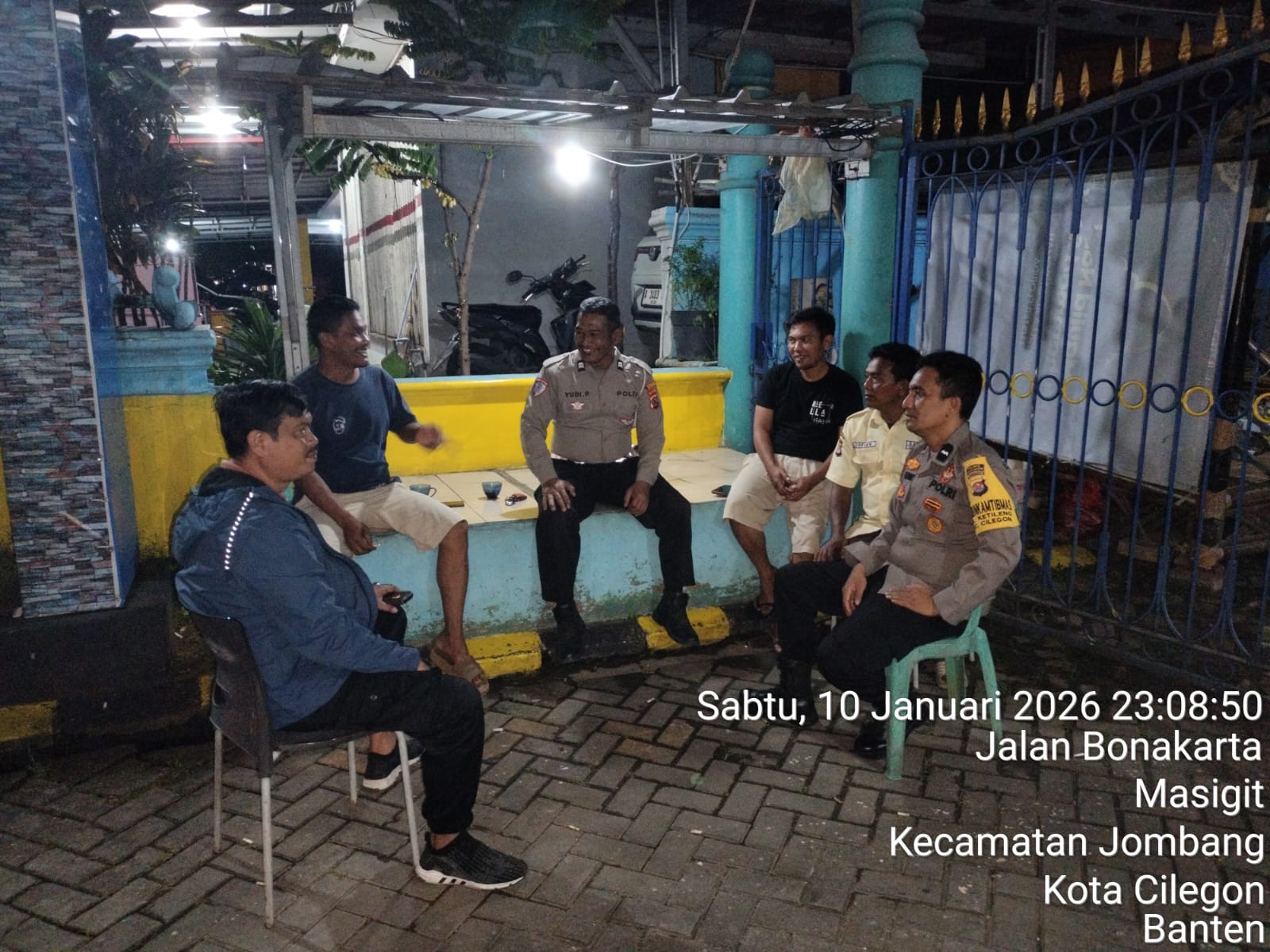 Bersama Wrga kedung baya Cibeber, bhabinkamtibmas polsek Cibeber jaga Harkamtibmas tetap Kondusif