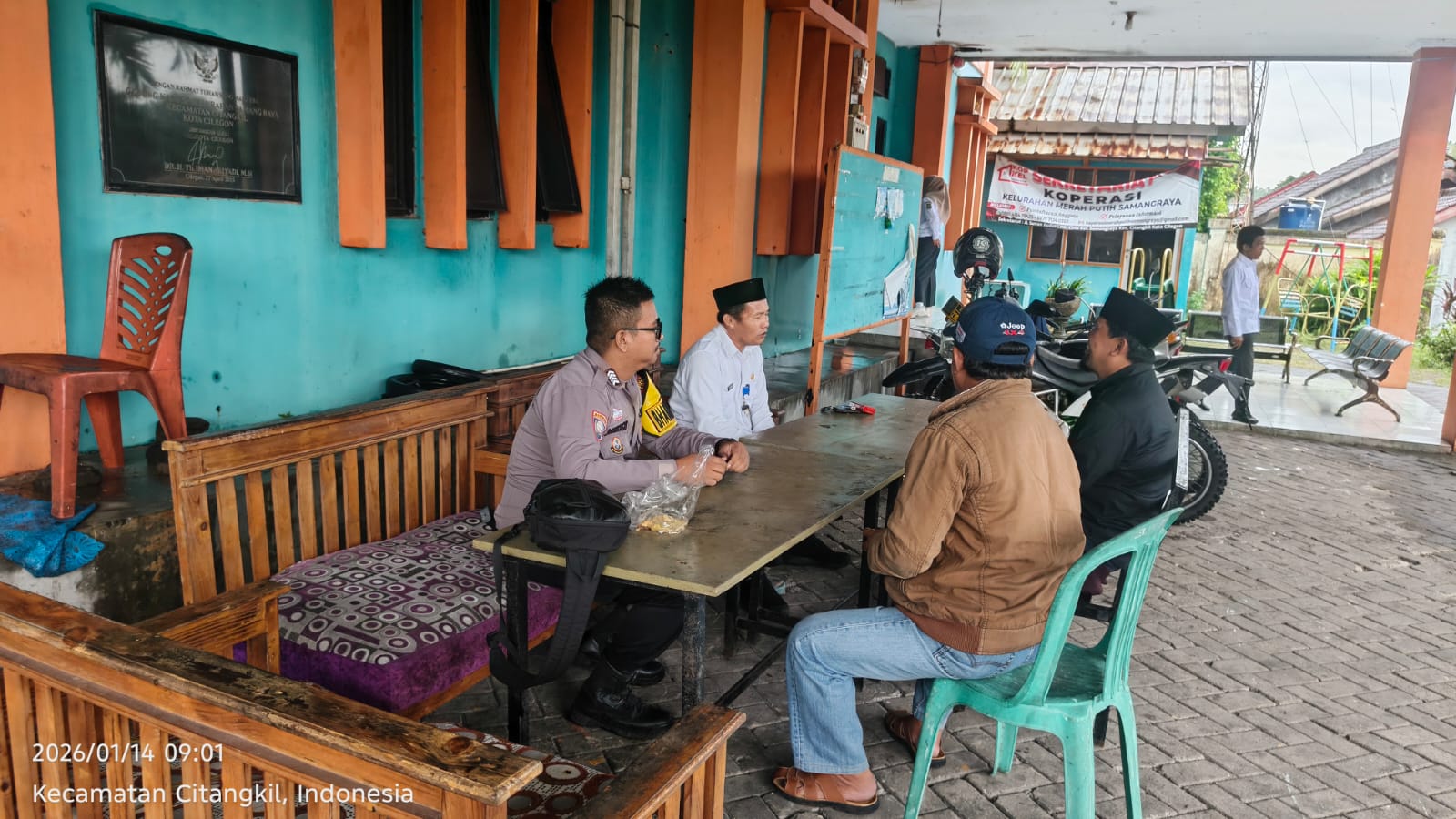 Cilegon - Bhabinkamtibmas Polsek Ciwandan Polres Cilegon Polda Banten Menyapa warga serta Ajak warga Binaannya untuk berperan aktif jaga keamanan lingkungan serta jalin komunikasi agar tercipta situasi aman di daerah hukum Polsek Ciwandan Polres Cilegon Polda Banten, Rabu (14/01/2026).