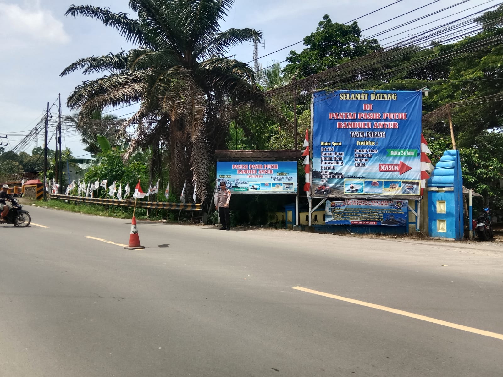 ruas jalan wisata Anyer, tepatnya di depan kawasan wisata Pantai Pasir Putih