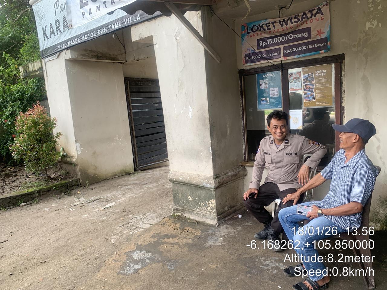_*POLRES CILEGON*_ | Polsek Cinangka Polres Cilegon Polda Banten melaksanakan kegiatan patroli Serta memberikan Himbauan kepada pengunjung pantai yang berwisata dan Sambang kepada petugas penjaga pantai dan juga antisipasi harkamtibmas di Wilayah Hukum Polsek Cinangka Polres Cilegon Polda Banten, Minggu (18/01/2026).
