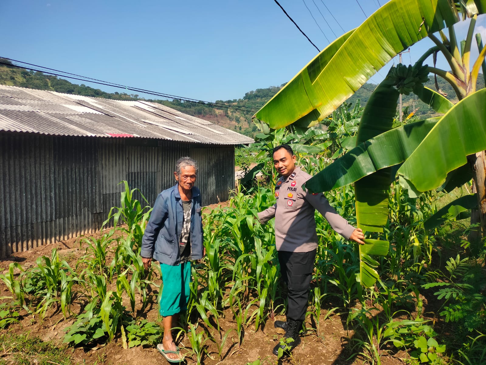 Pantau lahan jagung pok tani sinarjaya kecamatan.puloampel Desa Puloampel oleh Bhabinkamtibmas Polsek Puloampel
