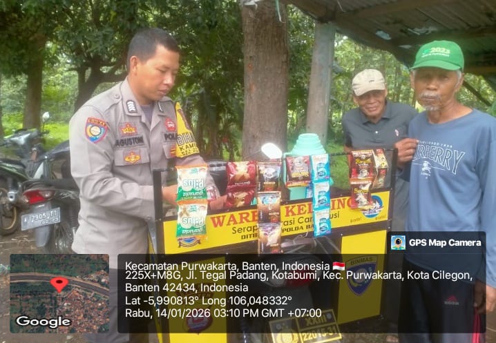 Personil sat intelkam melakukan koordinasi dengan tokoh masyarakat kec. Cinangka kabupaten serang.
