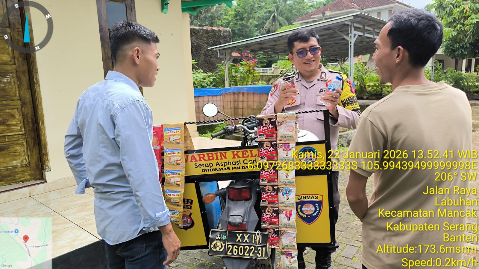 Sebagai Pengemban Fungsi Harkamtibmas, Bhabinkamtibmas melaksanakan Kegiatan Sambang Kamtibmas Implementasi Program Commander Wish Kapolda Banten "WARBINLING" Warung Bhabinkamtibmas Keliling dan Implementasi Program Commander Wish Kapolres Cilegon "TRENDING" dalam rangka menciptakan situasi aman dan kondusif Di Daerah, KAMIS, (22/01/2026).